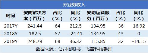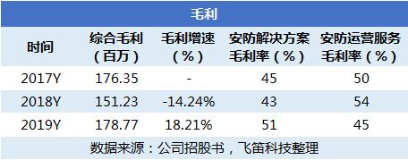 2019年,安防运营服务业务毛利率下降至45%,公司在招股书中解释,一方面是监控报警服务和安检服务收入同比有所下降;另一方面,公司开始拓展智慧社区、易制爆危险品库的监控报警运营服务,相关事业部进行了人员扩张,导致直接人工成本有所增长,但业务尚未产生规模效益。
