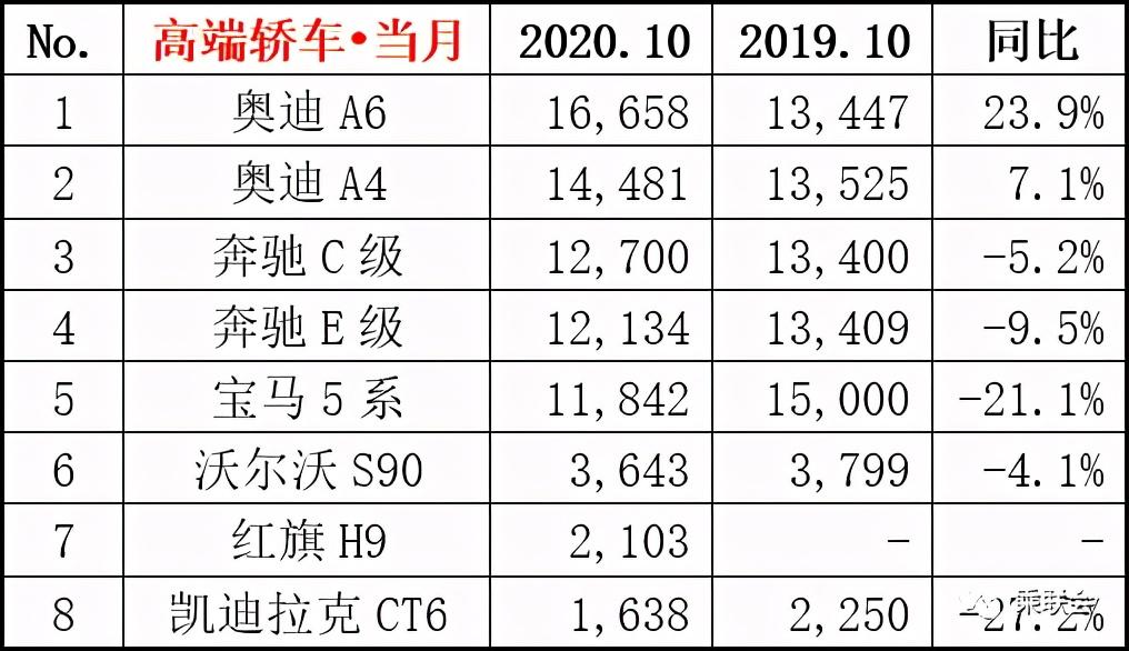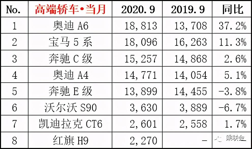 据中国汽车流通协会(乘联会)汽车市场研究分会,10月11日发布的国内10月乘用车零售销量排名快报显示,红旗轿车的扛鼎之作,C级豪华轿车红旗H9位居高端轿车销量榜单第七名,销量达2103辆。而在9月份的榜单中,红旗H9也步入前十,名列第八。