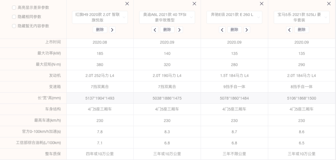 综合上述简单对比,在产品竞争力层面,可以说红旗H9完全具备与BBA同级产品一较高下的能力。
