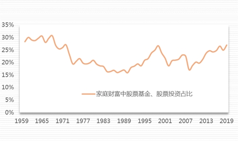 美国有世界上最大的股票市场,美国人对股票的投资也是最“豪”的,1960年代就占到财富的30%。