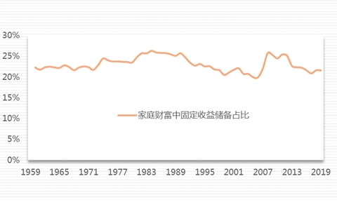 其中,固定收益储备占比长期稳定在20%-25%,保险和退休金计划占到了另外的25%。固定收益储备中大部分又是债券基金、货币基金这类投资工具,存款占比较小。