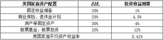 虽然处在低利率环境中,美国家庭财富中存款占比很少,金融资产占比很高,股票投资更是取得了平均12%的年化收益,这些共同助力美国家庭的资产平均收益率达到了5.41%。