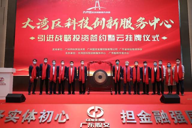 此次战略投资签约是大湾区科技创新服务中心的首轮融资,也是大湾区科技创新服务中心在省、市政府的支持下,打造粤港澳大湾区标杆型科技创新服务平台,迈向资本市场的重要一步。大湾区科技创新服务中心投资签约的同时成功挂牌广东股权交易中心,挂牌代码892818。