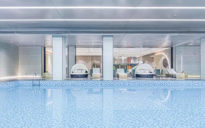 瑜伽室、健身房,充分满足了当代人的健身需求,舒适清爽的环境,以灰蓝色为主的高端简约风格,让你很快就能找到内心的平静。