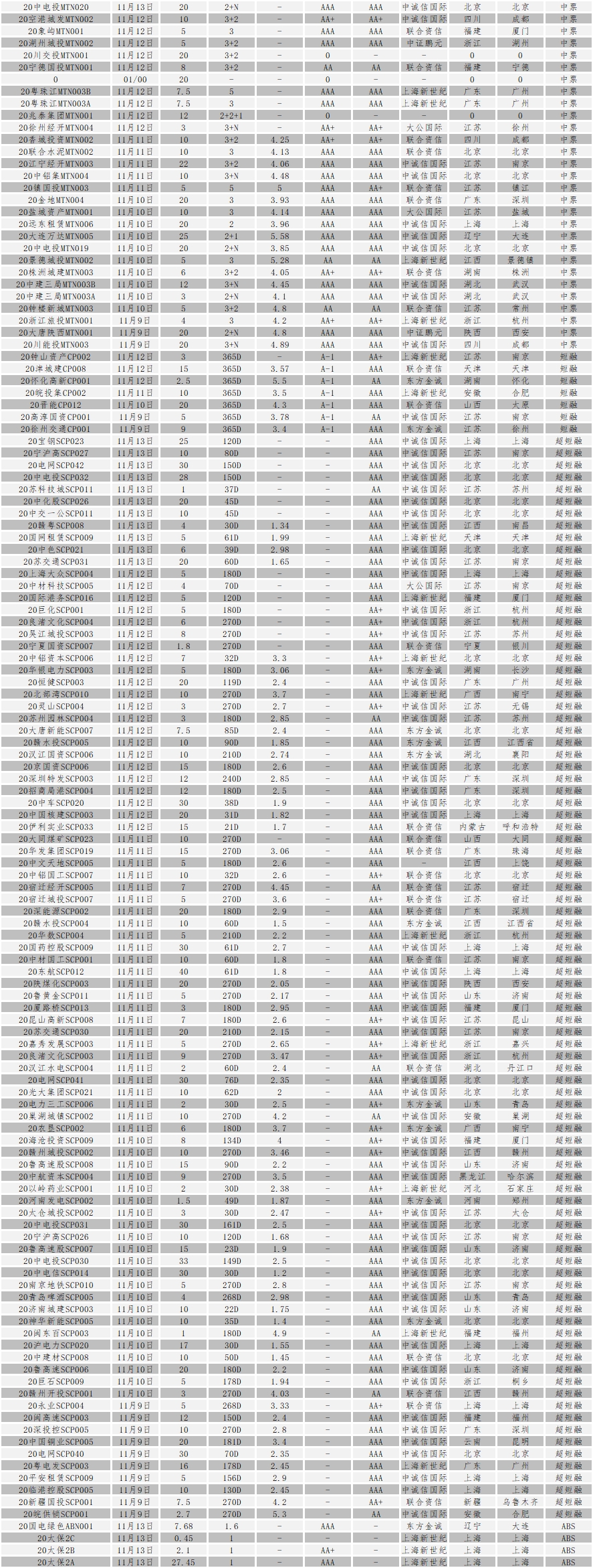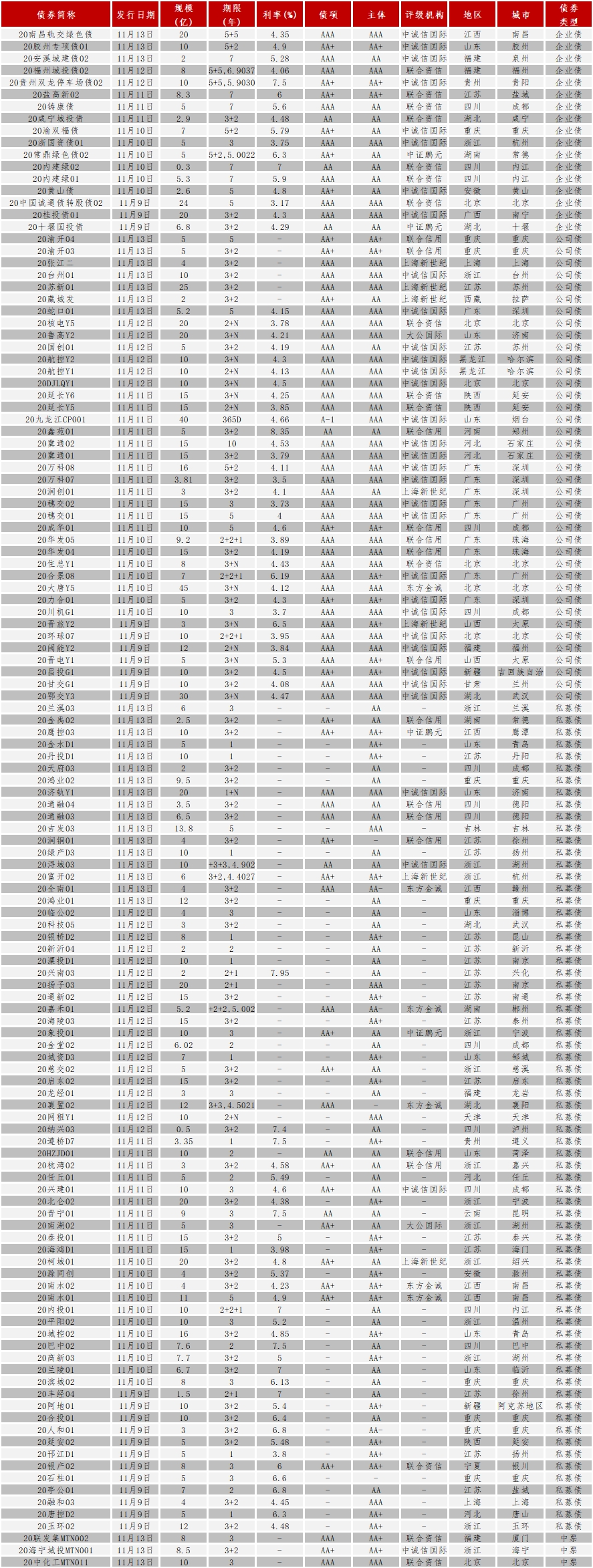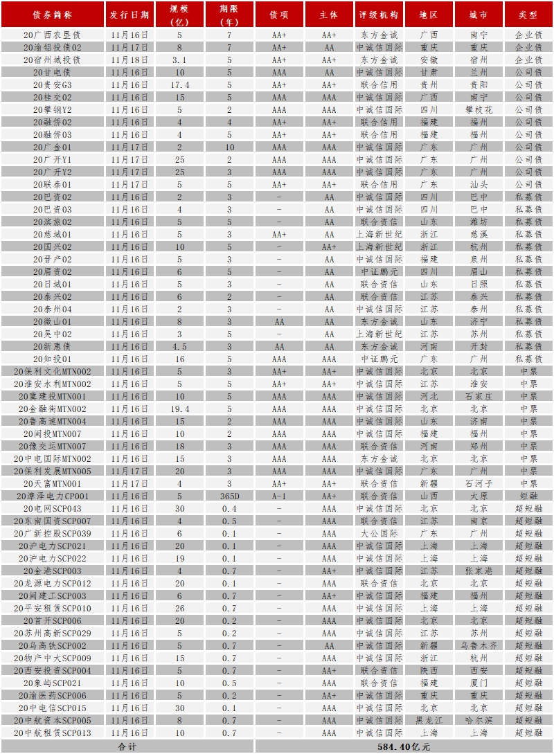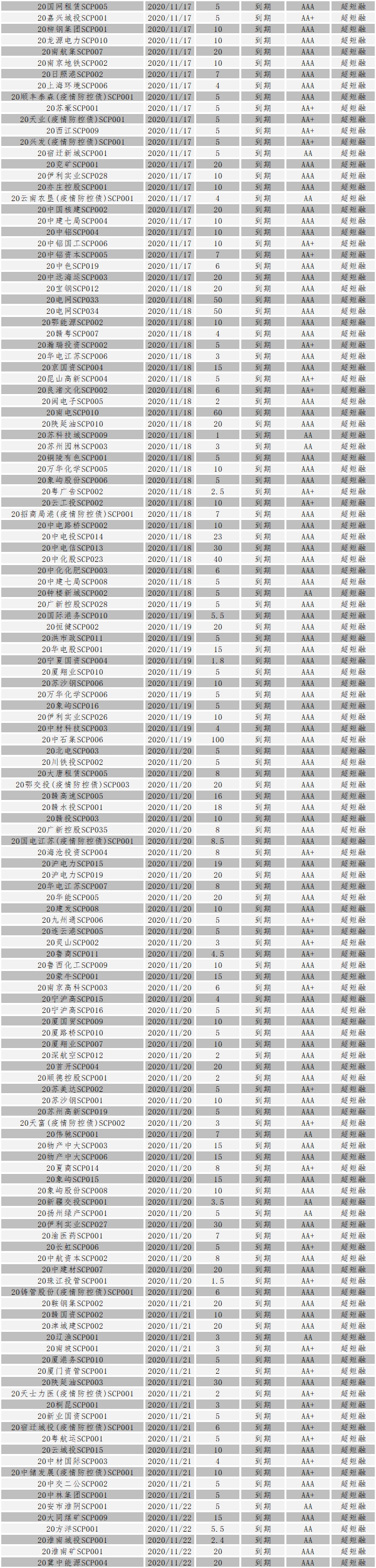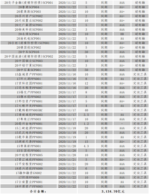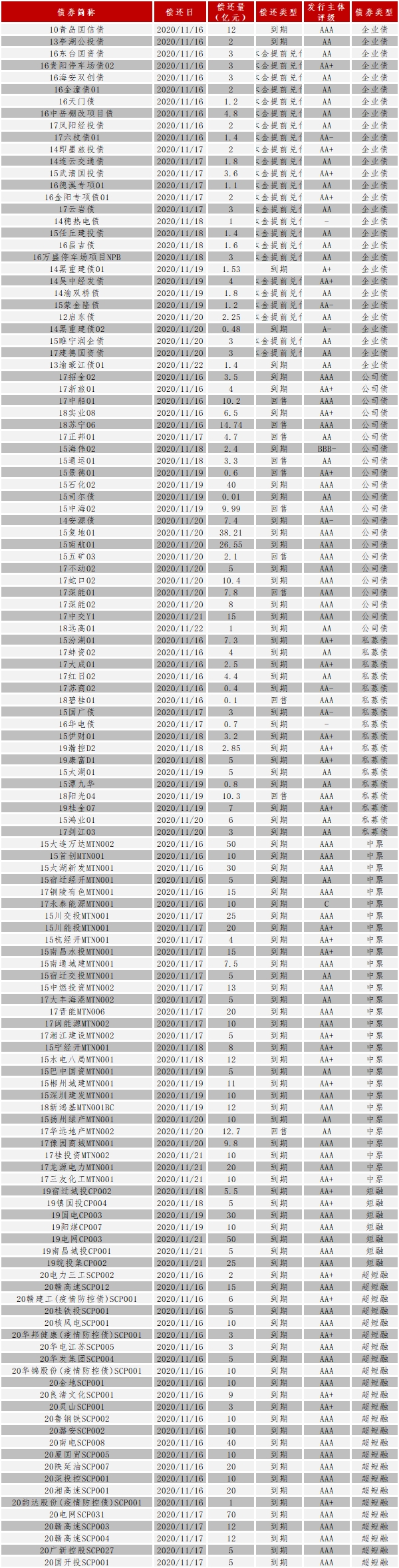 表五 债券市场本周偿还统计(2020/11/16-11/22)