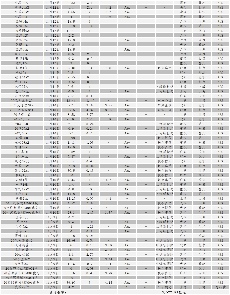 上周共发行各类信用债336只,发行规模为3,670.91亿元,其中,企业债、公司债、私募债、短融(包括超短融)和中票共发行254只,规模合计2,658.78亿元。本周计划发行各类信用债57只,规模为584.40亿元。其中公司债、企业债、短融(包括超短融)和中票共发行57只,规模合计584.40亿元。