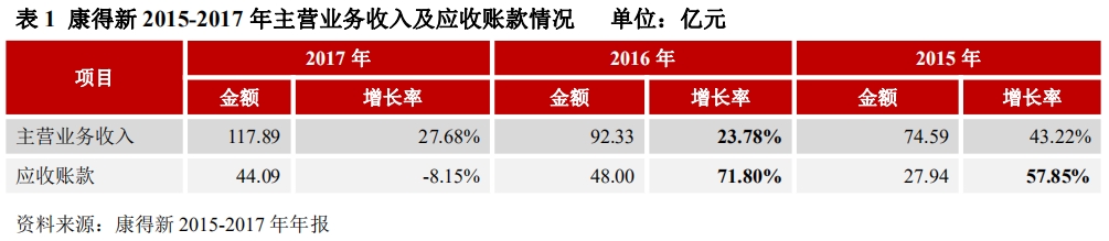 2019年7月5日,康得新收到证监会《调查通知书》,2020年9月29日收到《行政处罚决定书》,显示2015-2018年 ,康得新通过虚构销售业务、虚构采购、生产、研发、产品运输费用等方式,虚增营业收入、营业成本、研发费用和销售费用,导致2015年至2018年年度报告虚增利润总额,分别占各年度报告披露利润总额的 136.22%、127.85%、134.19%、711.29%。我们观察其2015-2017年应收账款和主营业务收入的变动情况,2015年和2016年康得新应收账款增长率均较高,在2016年达71.80%,大幅高于当年主营业务收入增长率(23.78%)。