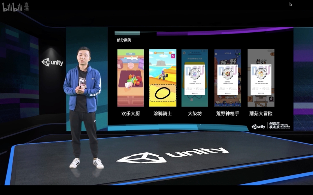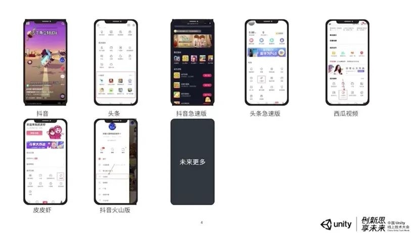 通过唐永在分享会上演示的视频来看,Unity小游戏在头条等字节系平台上,让用户省去了下载过程,可直接调用游戏内容。