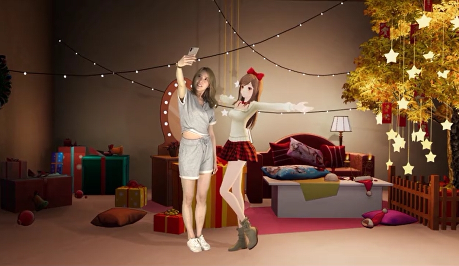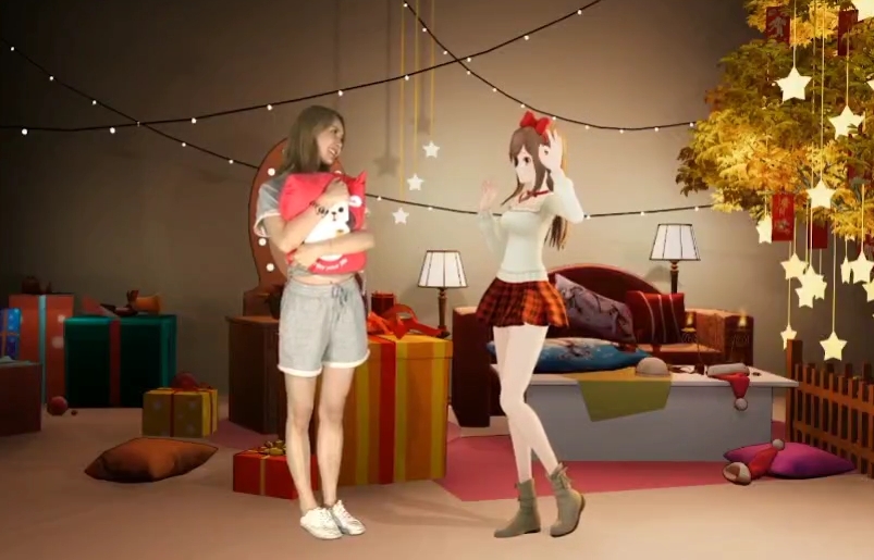 在形式感上,可以形成的虚拟角色互动也越来越多样。虚拟角色可以出现在完全虚拟的场景当中,举办一场线上的发布会、演唱会、见面会。也可以完全与现实连接,在真实的场景当中,与真人合作出镜。