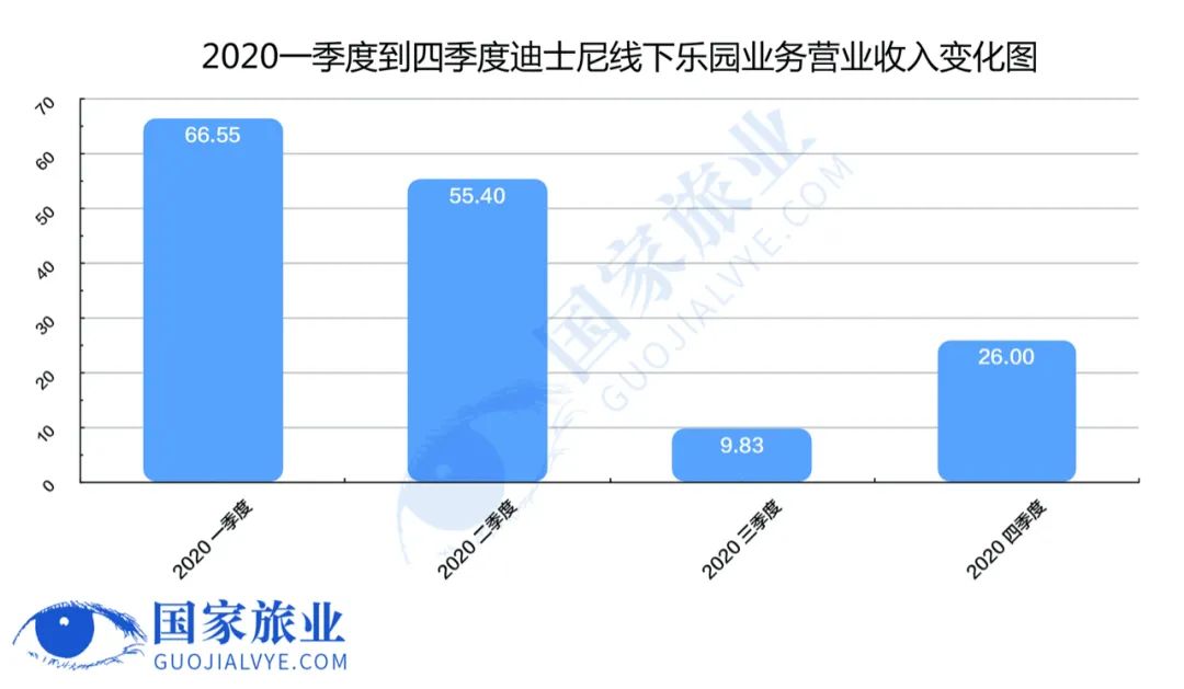 2020一季度到四季度迪士尼线下乐园业务营业收入变化图