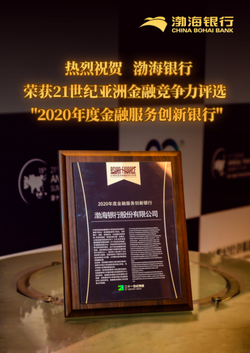 日前,在由《21世纪经济报道》、21财经APP主办的2020第十五届21世纪亚洲金融年会上,最年轻的全国性股份制商业银行——渤海银行获颁“2020年度金融服务创新银行奖”,这是继去年渤海银行在“21世纪亚洲金融竞争力”评选中首度斩获“金融科技银行”称号后再度获行业权威媒体认可。