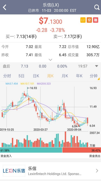 2)LexinFintech Holdings Ltd乐信金融科技控股有限公司,成立于2013年,总部位于深圳。乐信金融科技控股有限公司通过其子公司为中国新人群提供在线金融消费平台。旗下平台包括乐分期、乐卡、桔子理财、乐信财富、鼎盛科技。