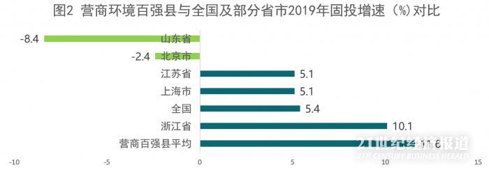 袁保鸿认为,投资增加、工业利润增加是一个地方营商环境良好的关键标识。2019年,营商环境百强县固定资产投资增速平均约为11.6%,高于全国固定资产投资增速(5.4%%),也高于上海市、北京市、山东省、浙江省、江苏省等东部主要经济大省(市)的固定资产投资增速。