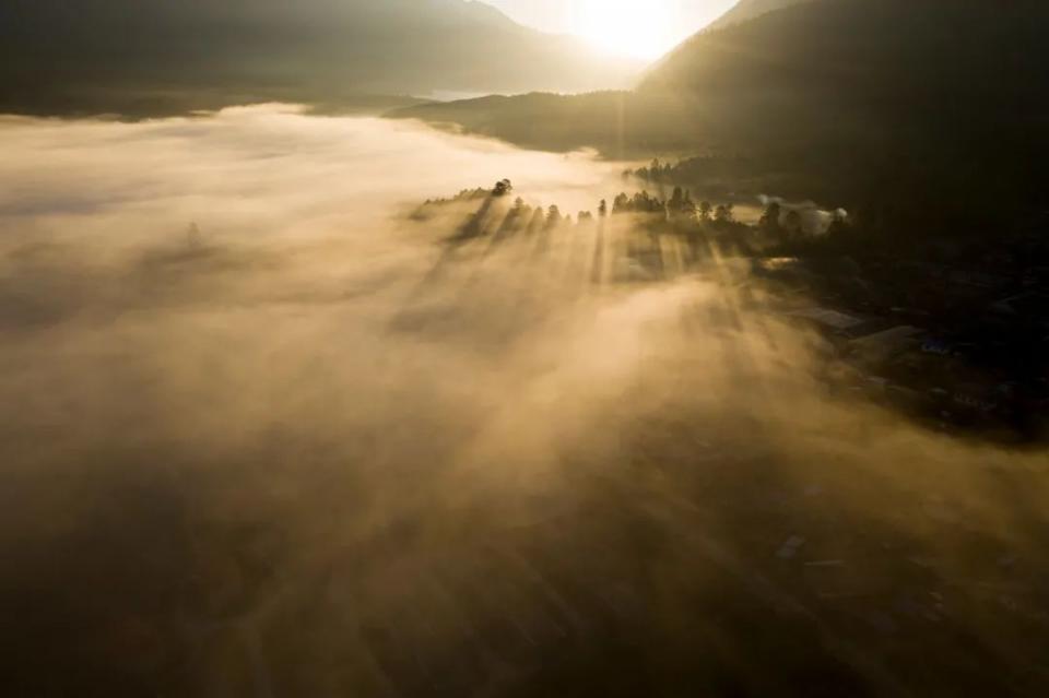 相对于西藏整体贫瘠、干旱的地理环境,林芝的植被堪称茂密。而易贡沟的小气候更是可以用湿润来形容,是特殊中的特殊。正值深秋时节,清晨的易贡沟被浓雾笼罩,草木的每一片叶子都被浓雾浸润,行成无数微小的水珠。这个地方的氧含量也更高,沟谷中的阳光令人愉悦,我们一行人都远离了高反,甚至产生一种身不在西藏的错觉。