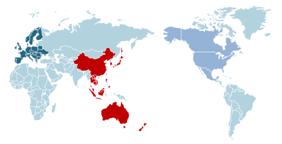 图 1 北美自由贸易区、欧盟、RCEP三足鼎立