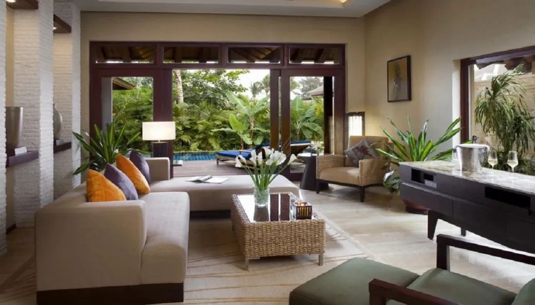 在内部设计上,别墅呈现宁静私密的空间,客人更可饱览热带园景、红树林景及无限海景。每座别墅均设有宽敞露天阳台连双人或单人日光浴椅,让宾客畅度悠闲的白天和晚上;宾客亦可于花园凉亭下乘荫,或于怡人的无边际泳池欣赏水天相接的美景。