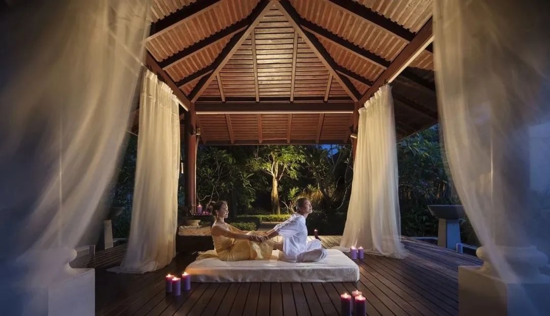宾客甫穿过石桥通往楼高三层的水疗中心后,即可展开经典的水疗体验。楼高三层的水疗中心建于庭院内,中央设一个石造池塘,共设24间护理室,悉心打理的茂密花园及镇静心灵的水景设施为水疗中心营造放松身心、激发感官达致内心宁静的氛围。