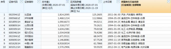 比亚迪,可选消费,下半年至今涨幅达125.26%,千亿市值以上级别公司涨幅榜首位。