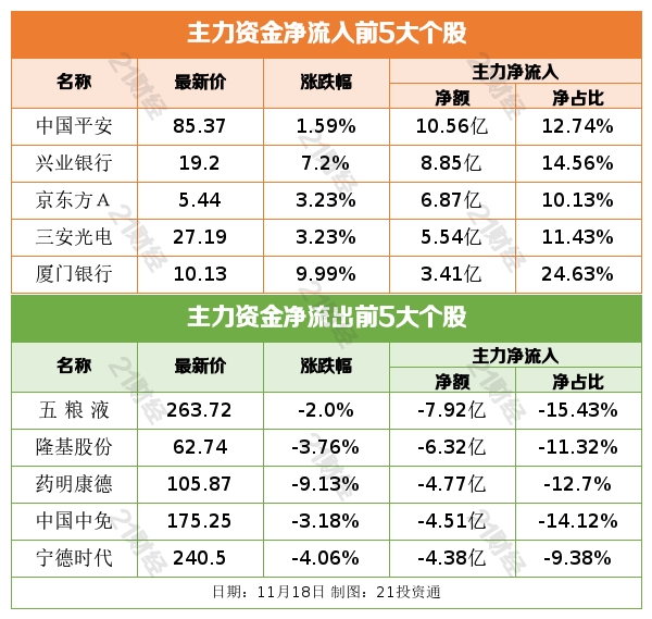 从个股来看,北向资金净买入兴业银行(601166.SH)、京东方A(000725.SZ)、隆基股份(601012.SH)、上汽集团(600104.SH)、洛阳钼业(603993.SH)居前。