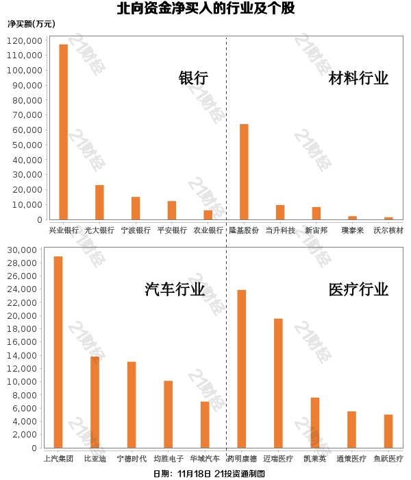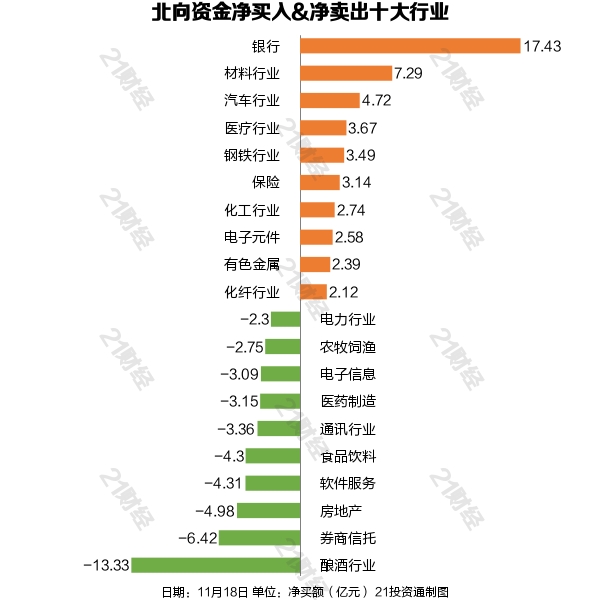 据21投资通智能监测,11月18日,北向资金净卖出0.14亿元,其中沪股通净买入6.13亿元,深股通净卖出6.27亿元。