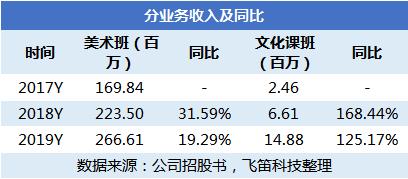 美术班,包括长期班和短期班,长期班主要针对应届或往届美术生的美术艺考培训,短期班则主要针对利用寒暑假、周末或其他短期时间接受短期兴趣培训的学员。2019年,美术班实现收入2.67亿元,同比增长19.29%,较2018年31.59%的增速下降。