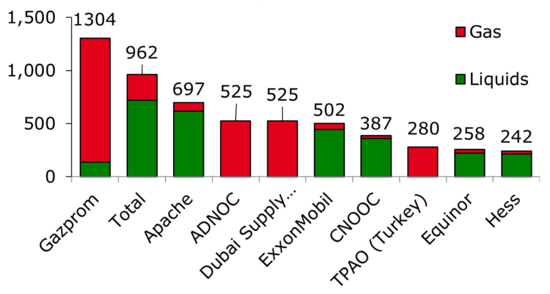 数据显示,今年前10个月俄罗斯天然气工业股份公司(Gazprom)得益于卡拉海(Yamal)等地天然气资源的发现,以13.04亿桶的油气发现在全球排名中位居首位。
