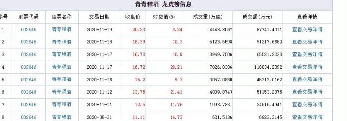 股价连续涨停背后,青青稞酒遭到游资接力炒作。11月以来,青青稞酒已经6次登上龙虎榜。