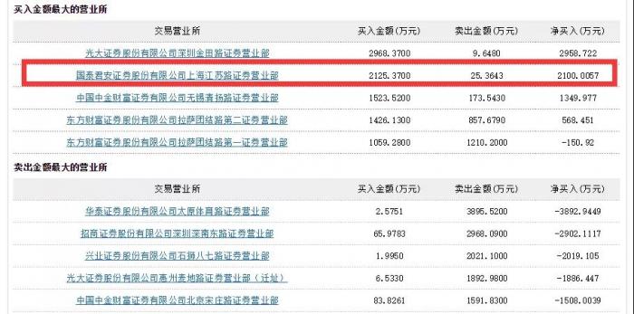 其中,金田路、章盟主分别买入2968.37、2125.37万元,排在龙虎榜买入前两位。无锡清扬路、拉萨团结路第二、第一分列三四五位。