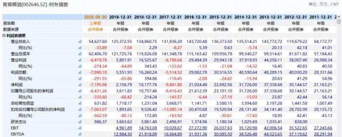 2020年前三季度,青青稞酒实现营收5.46亿元,同比下滑33.89%;实现净利润为-6431.26万元,同比下降333.60%,由盈转亏。公司今年前三季度实现营收5.46亿元,同比下降33.89%;净利润为亏损6431.26万元,同比下滑333.6%。公司第三季度营收为1.92亿元,同比下滑32.45%;净利润为亏损2924.61万元,同比下滑675.51%。