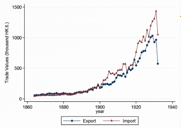 为了保证贸易的运转,我们要特别强调新式海关的建立。1861年开始,近代海关建立。英国人赫德掌管中国海关五十年,建立了严格的一套税收、统计、检疫系统,之后又帮助中国建立了新式邮政。所以海关在中国近现代化中起到非常重要的作用。同时,各个列强在中国建立了租界,在租界与租借地内建立了外国制度。英国著名经济史学家马德斌(Debin Ma)研究,租界不仅是对中国独立,有时也对自己的母国独立,是一个独立运营的小实体,这对中国的外溢很大。外国企业和商业大量涌入中国,因为竞争,中国现代工商业兴起。在这个过程中,我们大量采用新技术,贸易网络在中国扩展。此外,还有西方文化和宗教的传入,文化开始演化,包括建立学校、医院等。这些都导致新的经济中心的形成,城市的形成,人口的流动,从前的宗族体系被打破,中国社会内部开始瓦解,出现很大的裂变。