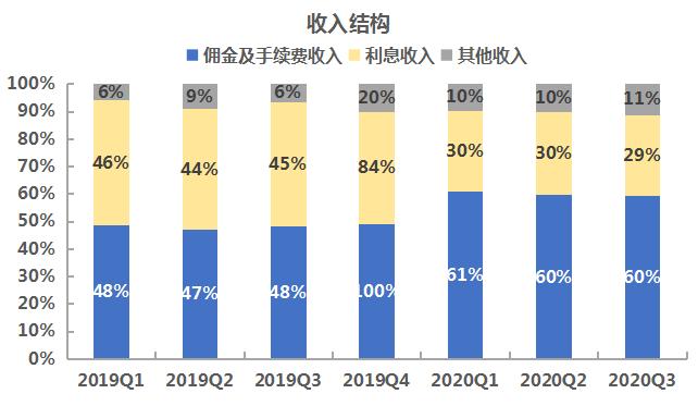 由上面的表格可以看到,三季度,富途的佣金及手续费收入、利息收入和其他收入占比分别为60%、29%和11%,较前两个季度变化不明显,可见公司的业务结构较为稳定。