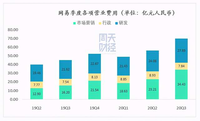 值得注意的是,在高增长表现的同时,网易的营业费用相比之前有所增高,本季度网易营业费用达到 70 亿元,同比增长 54.7%,也是近年来营业费用最高的一个季度。虽是峰值,但对比一些互联网公司网易营业费用依然处于低位,只是对于一向谨慎的网易来说,这个季度显得尤其特殊。