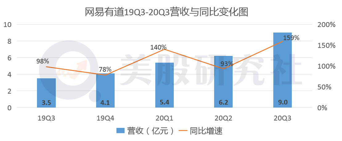 据财报数据显示,本季度有道的营收为9.0亿元,与上年同期的3.5亿元相比,同比增长159%;与上一季度的6.2亿元相比,环比增长幅度为45%。