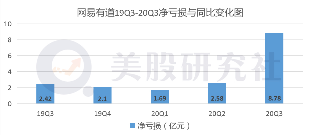 本季度营收高涨的一部分原因是投入的增多。三季度财报数据显示,有道的净亏损额为8.78亿元,相较于上年同期的亏损2.42亿元,同比扩大262.8%;与上一财季的亏损2.58亿元相比,环比扩大240.3%。