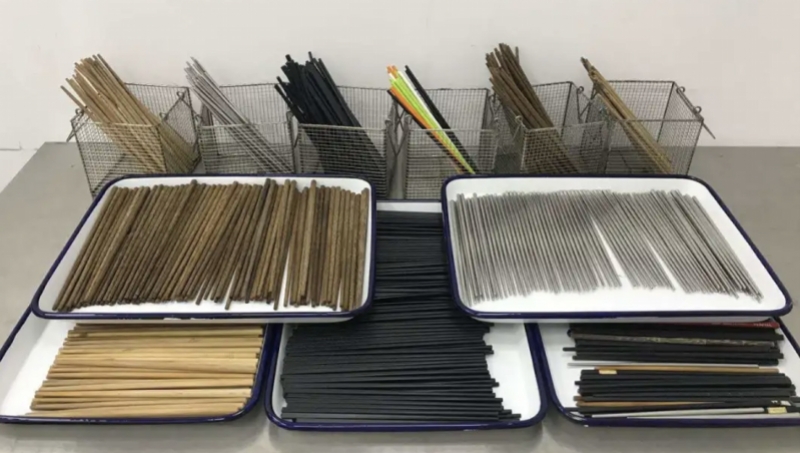 本次测试征集了200双普通家庭使用过的旧筷子和660双新筷子,样品材质包括木、竹、不锈钢、密胺、合金等五类。