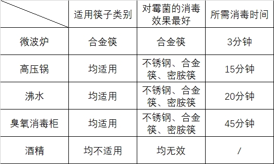 微波炉虽然消毒时间最短(3分钟),但只能用于合金筷;