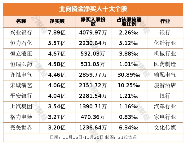 恒力石化(600346.SH)作为PTA-聚酯化纤领域的龙头,本周被净买入5.57亿元。恒力石油三季度净利润再创历史新高,大超预期,终端需求的超预期复苏拉动订单持续恢复,有利于巩固公司龙头地位,坚定看好民营炼化项目的长期竞争优势。