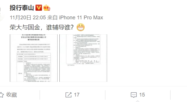 甚至有网友戏称,荣大与国金,谁辅导谁?