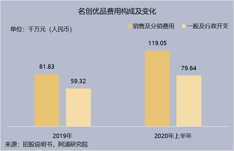 招股说明书显示,2019财年,名创优品总支出为14.12亿人民币,销售及分销费用为8.18亿人民币,占比57.97%。