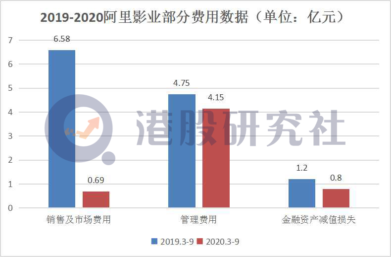 报告期内阿里影业实现亏损收窄离不开公司对支出的把控。由财报数据可知,阿里影业的管理费用从去年同期的人民币4.75亿元减少至本报告期的4.15亿元。金融资产减值损失由去年同期的人民币1.2亿元减少至本报告期的0.8亿元。并且销售和市场费用更是由去年的人民币6.58亿元锐减至报告期内的0.69亿元,阿里影业的成本压力得到一定程度的释放。