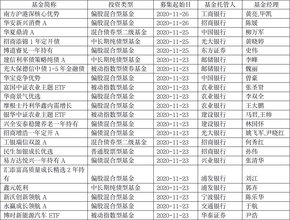 迎战年尾,各大基金公司的积极性非常高涨,11月23日至27日一周合计有22只新基金进入发行。