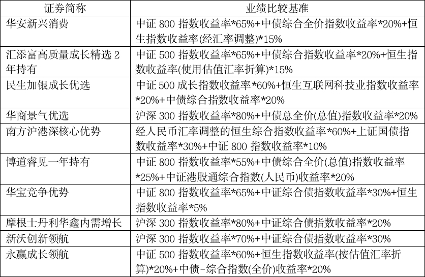 一般基金业绩基准,包括某一类股票指数乘以某比例再加上某一类债券比例乘以某比例,投资者要注意业绩基准。