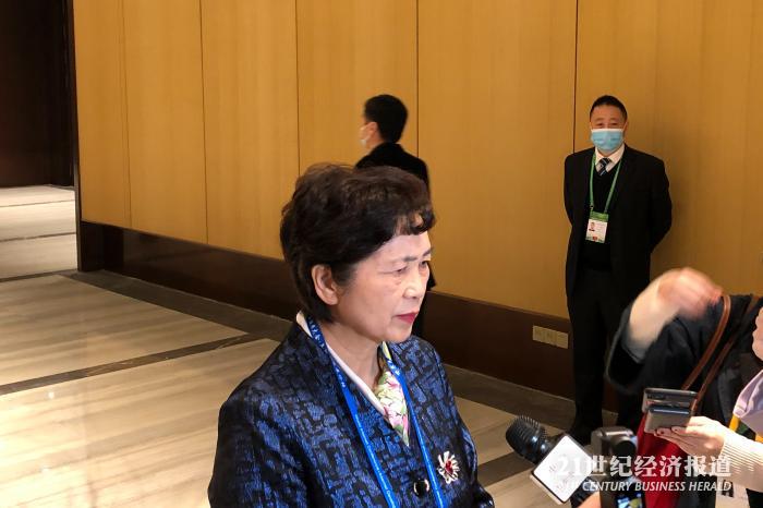 (李兰娟在会后接受记者采访,郑玮/摄)