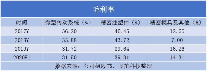 报告期内,公司微型传动系统毛利率分别为36.20%、35.88%、31.72%和31.50%,呈下降趋势,精密注塑件的毛利率为46.45%、43.72%、39.64%和39.31%,也呈下降趋势。公司解释为各类微型传动系统产品和精密塑件产品的销售结构在报告期内有较大的波动,使得整体毛利率也有较大波动,以及2020年上半年受新冠疫情的影响,除移动通信类微型传动系统外,各类微型传动系统产品和各类精密游注塑件产品毛利率均有所下降。