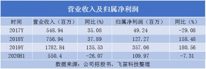 据招股书最新数据,2020年上半年,公司实现营收5.5亿元,同比下降26.07%,同期归属净利润为1.1亿元,同比下降7.31%,公司解释为受新冠疫情爆发及全球扩散等因素的不利影响。