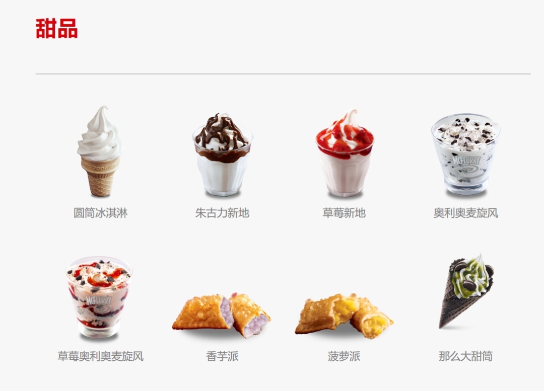 在麦当劳甜品站的菜单上,我们就能发现清晰的应用: