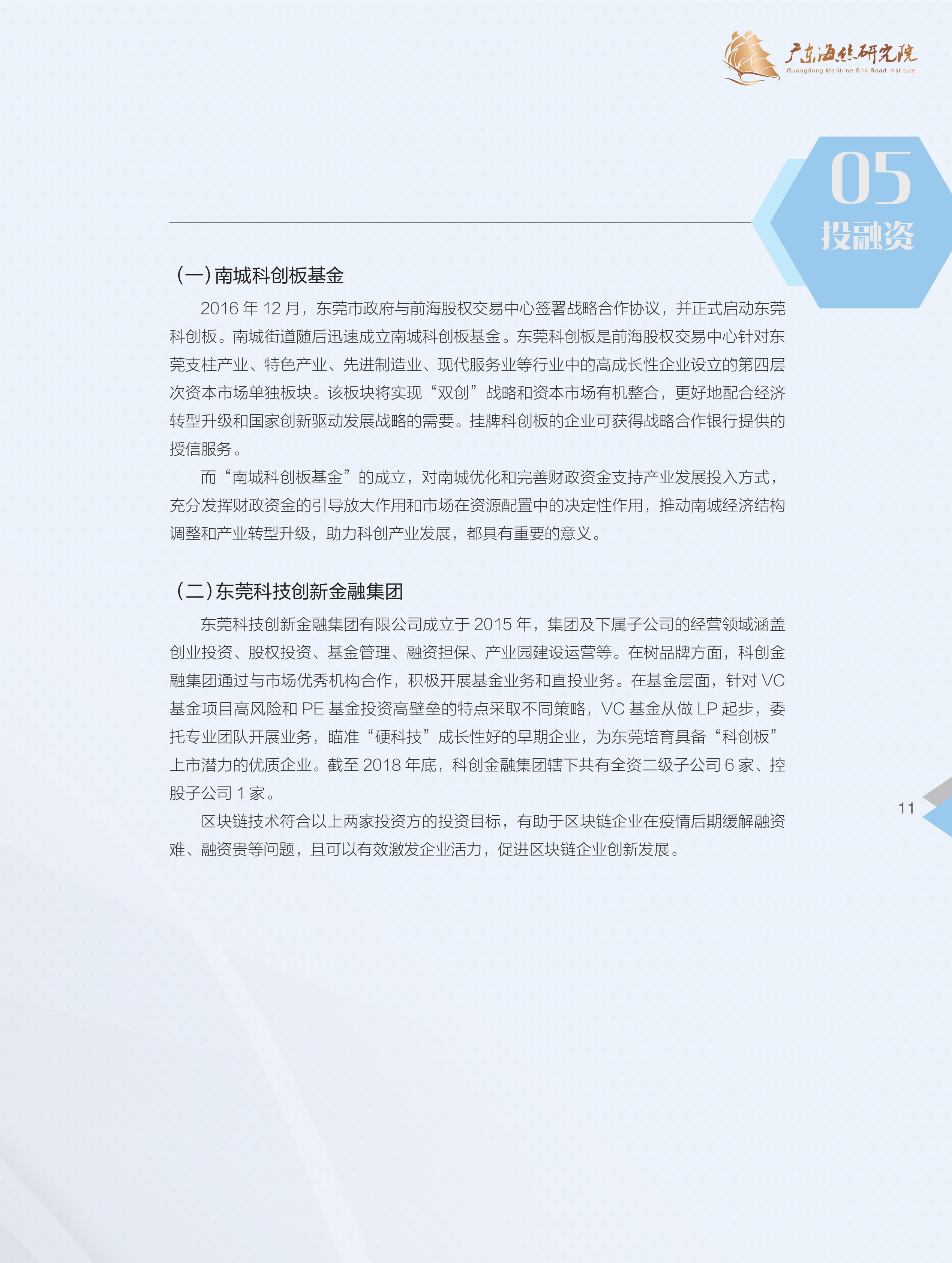 报告认为,区块链技术符合东莞目前的南城科创板基金及科技创新金融集团的投资目标,有助于缓解区块链企业融资难、融资贵等问题,有效激发企业活力,促进企业创新发展。