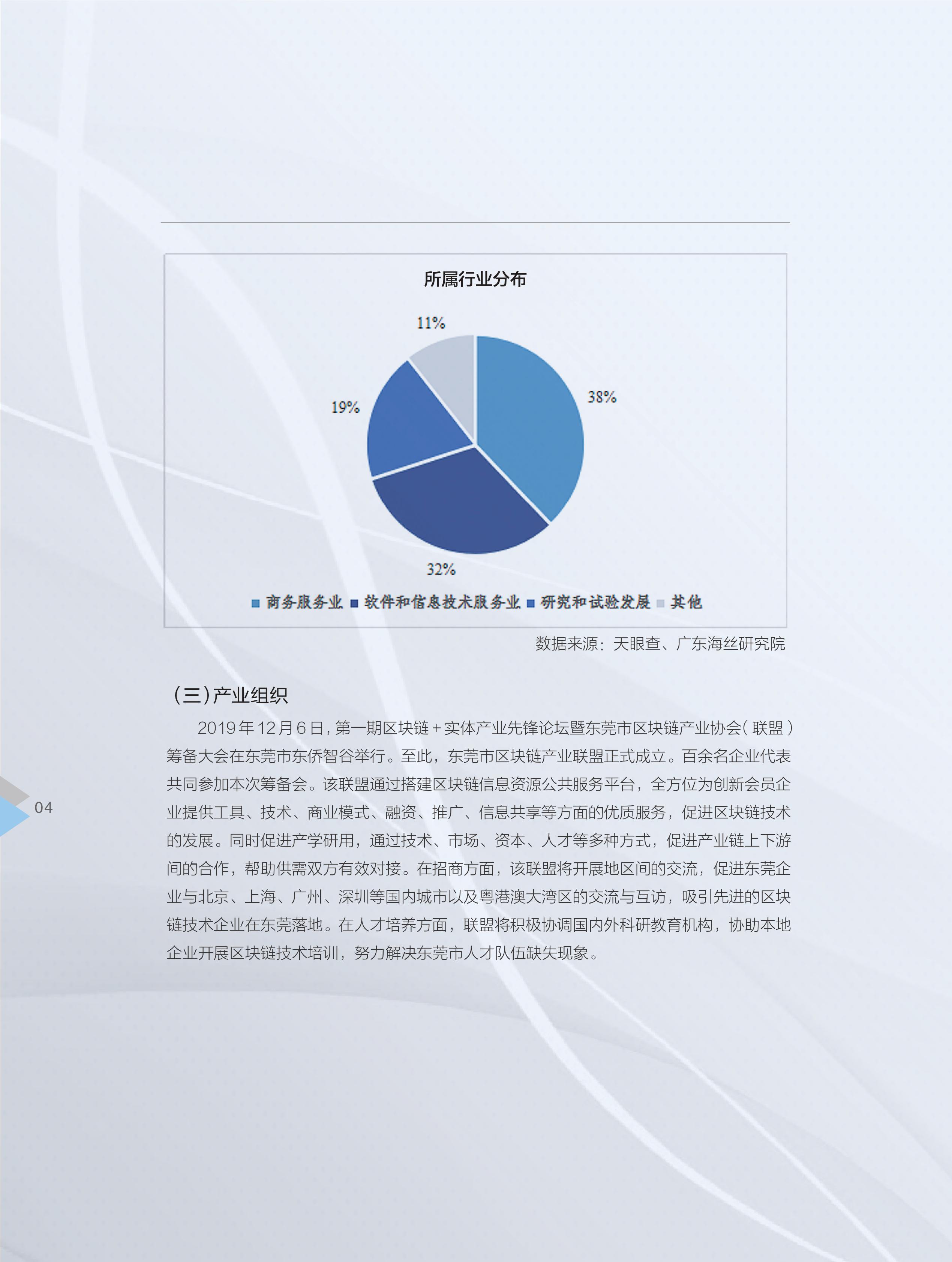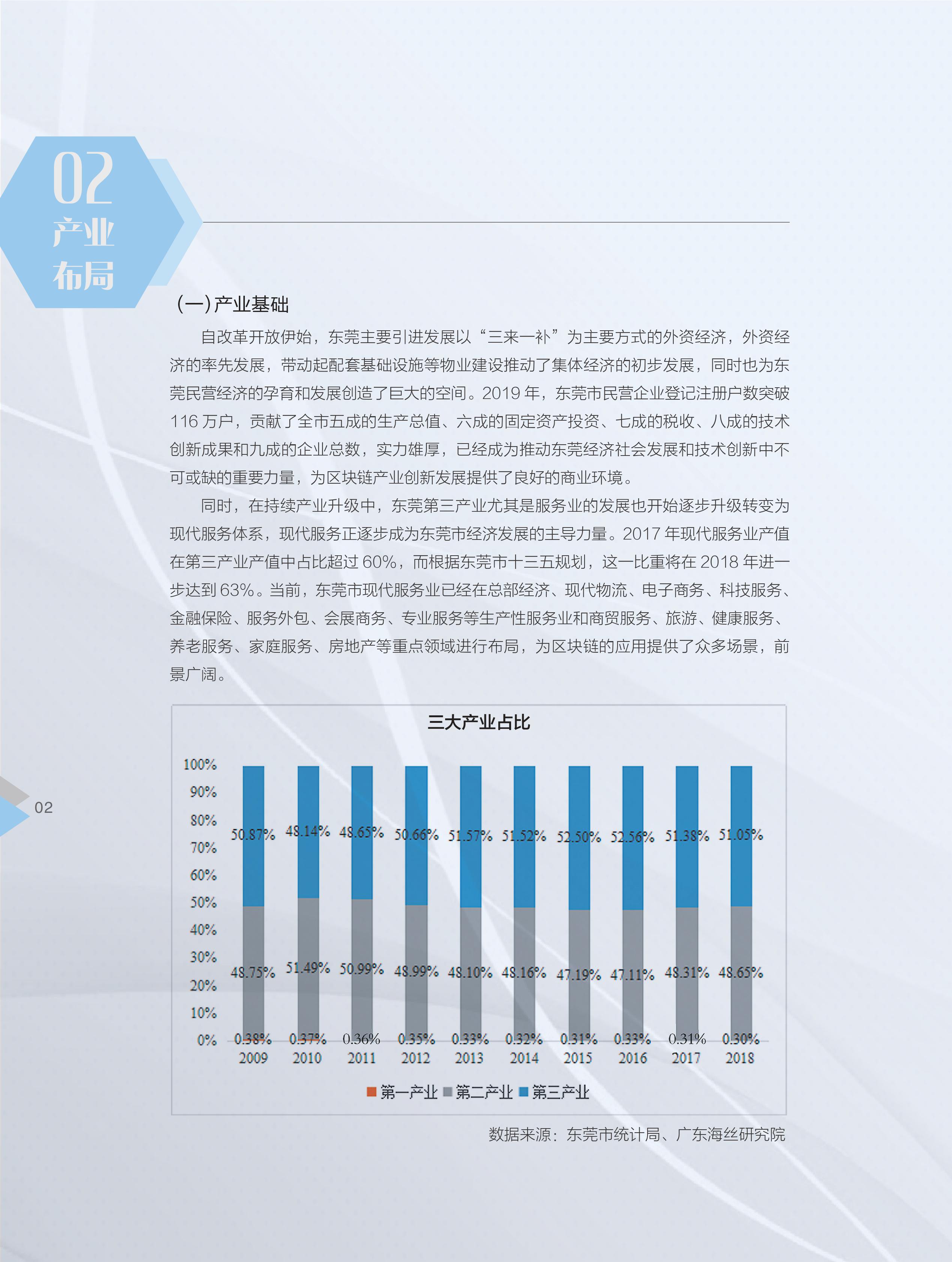 报告指出,现代服务业正逐渐成为东莞市经济发展的主导力量。根据规划,东莞市已在现代物流、电子商务、科技服务、金融保险等生产性服务业及商贸服务、健康服务、养老服务等东莞市重点领域进行布局,为区块链的应用提供了众多场景。