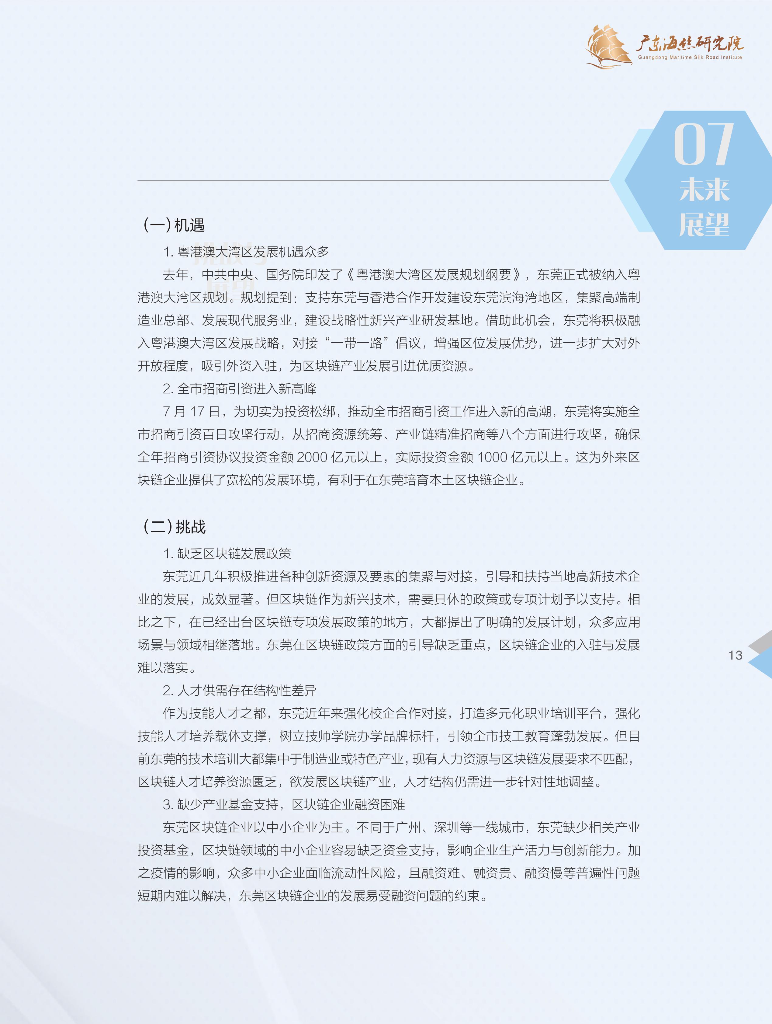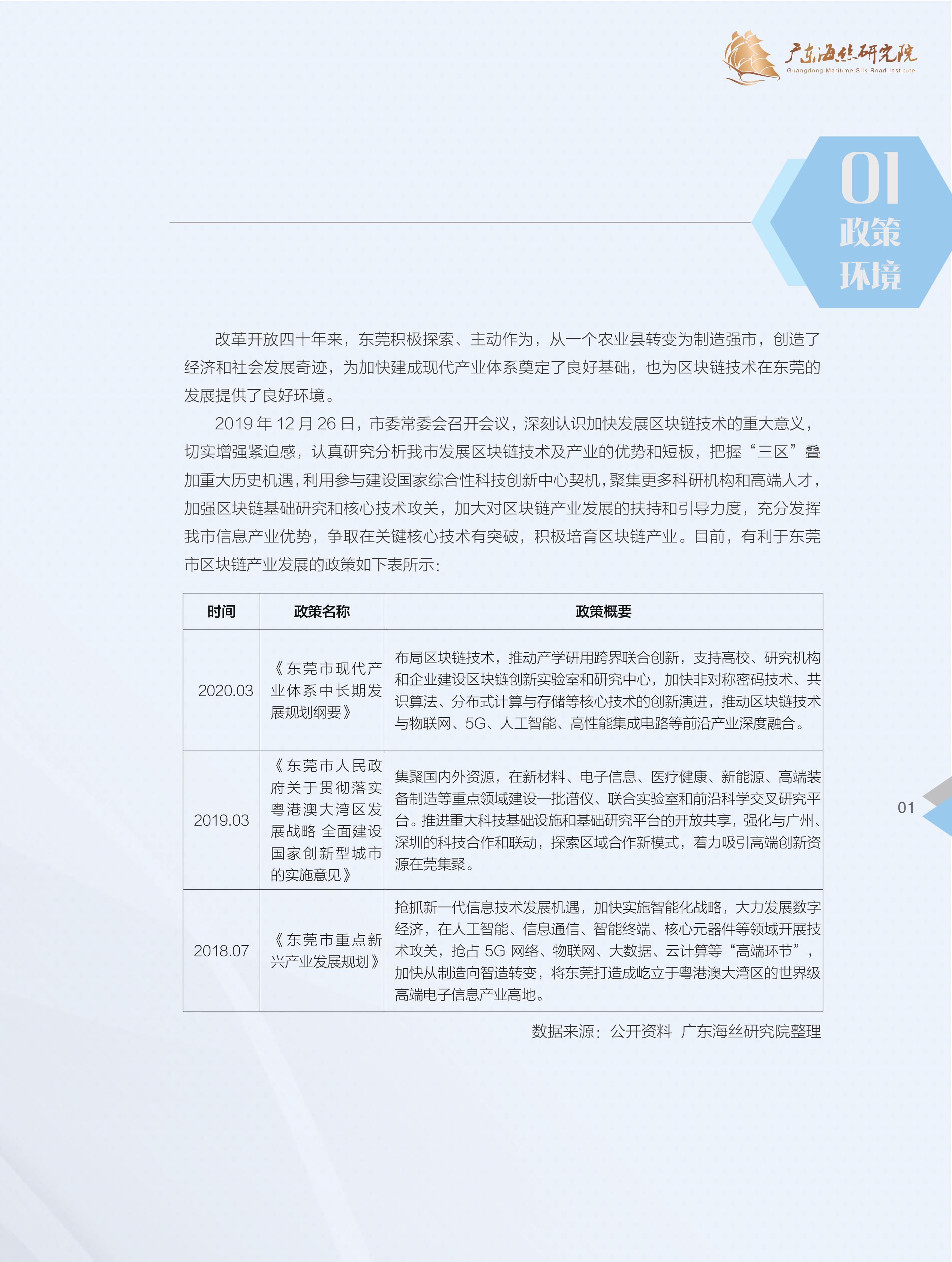 广东海丝研究院发布《2020 年东莞区块链产业发展报告:待开发应用场景丰富》,从政策环境、产业布局、技术力量、人才发展、投融资、典型应用等多维角度,对东莞参与争夺国际区块链中心的优势与不足进行详细解析,以期对推进区块链产业发展有所助益。