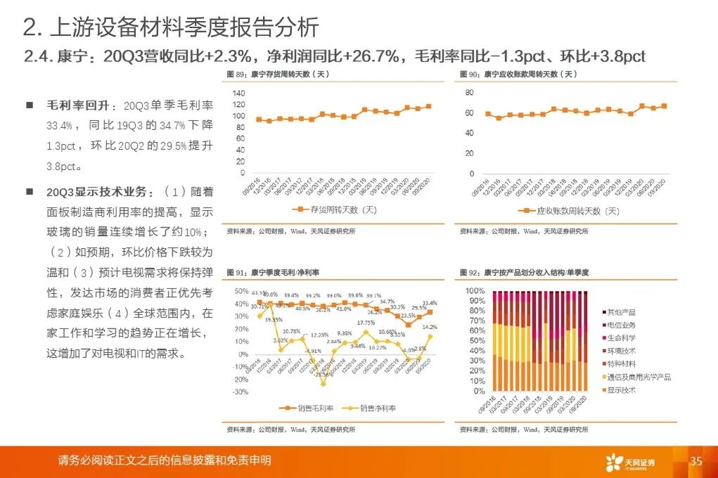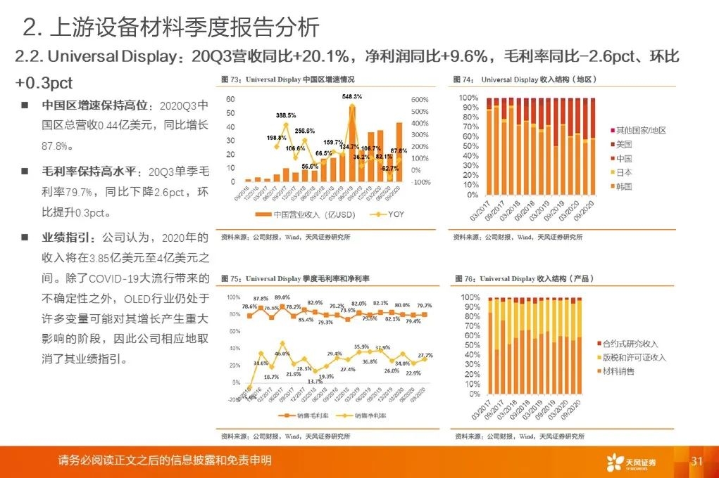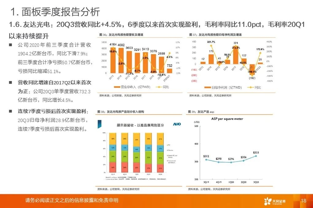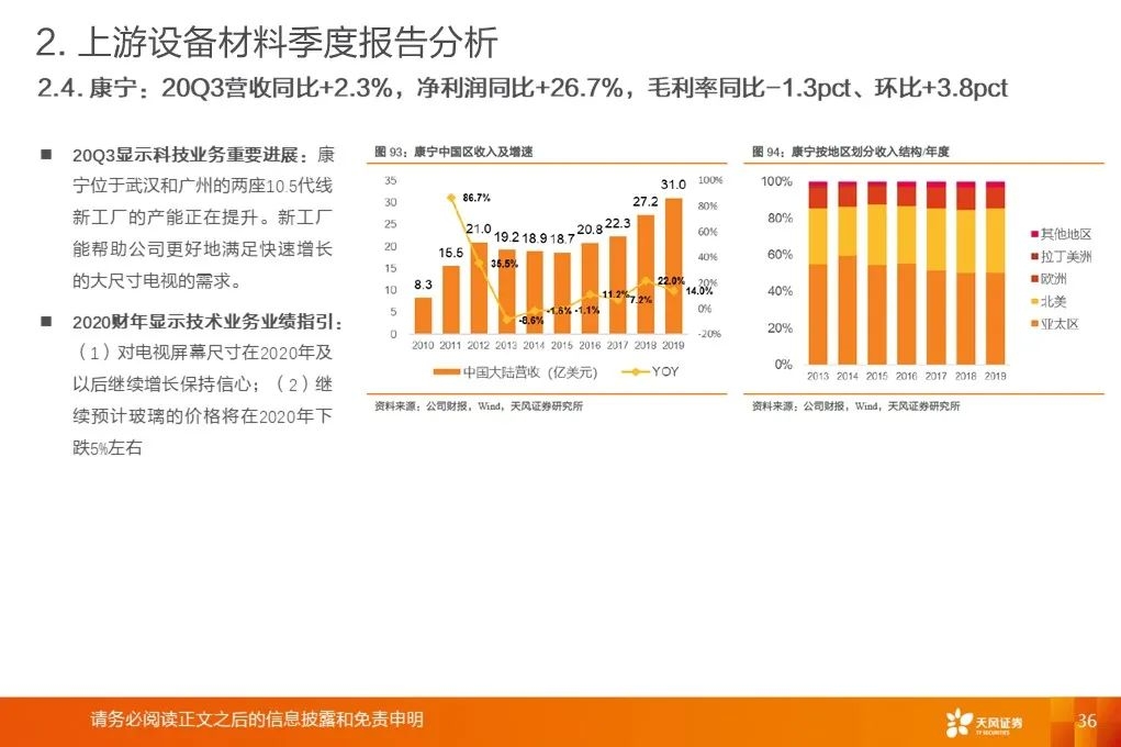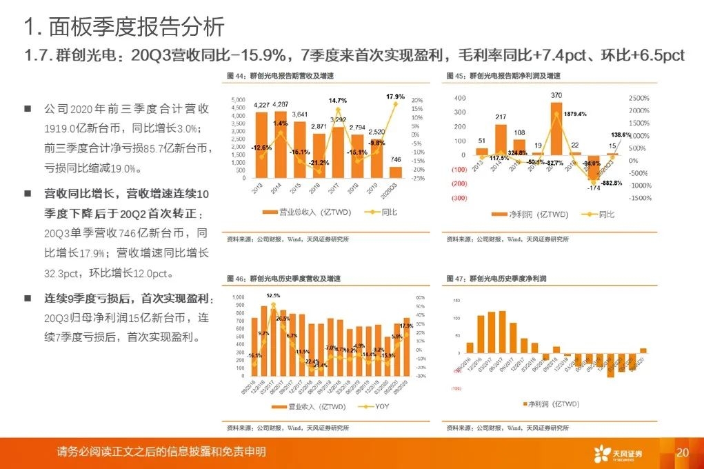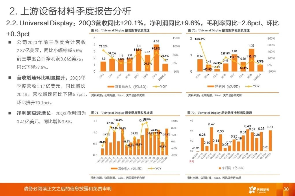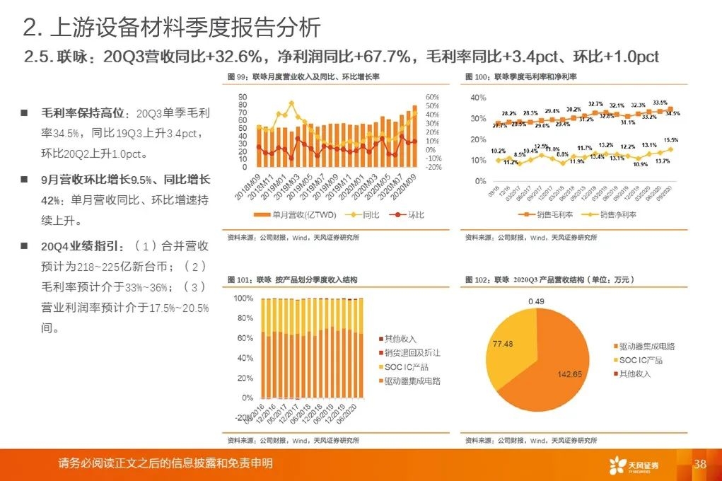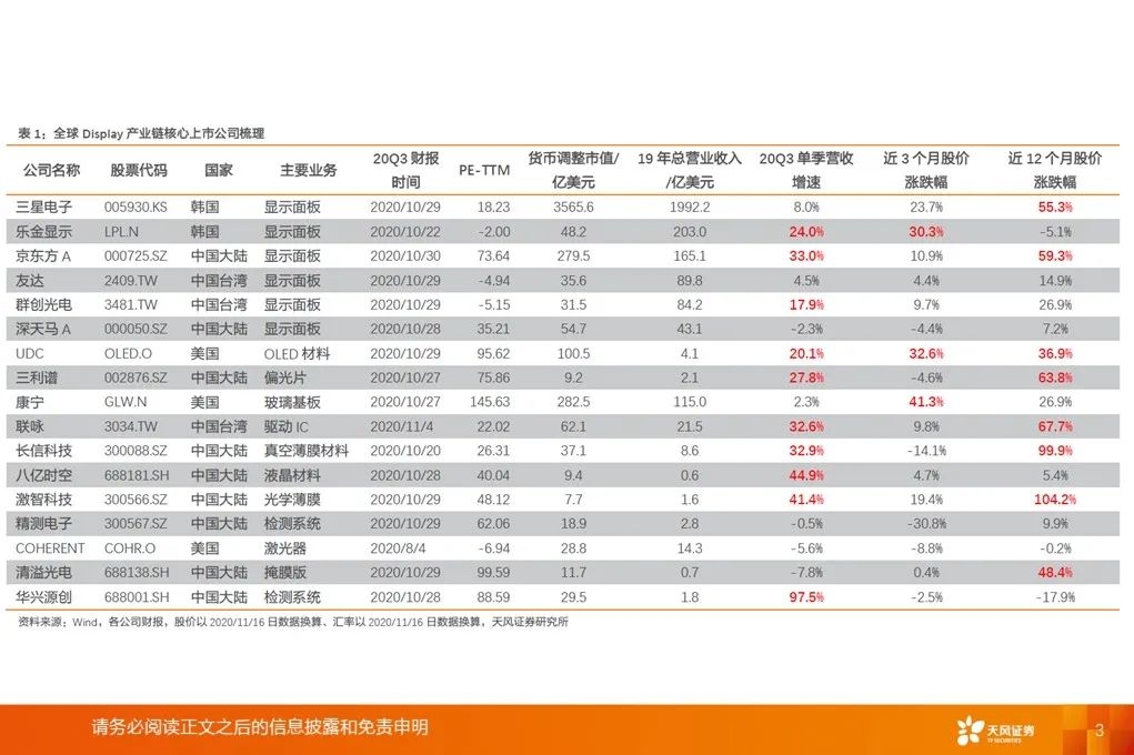重要指引:UDC预计2020年收入将在3.85亿美元至4亿美元之间,OLED行业存在较多不确定性。康宁对电视屏幕尺寸在2020年及以后继续增长保持信心。联咏预计20Q4业绩指引:20Q4合并营收218~225亿新台币、毛利率33%~36%。
